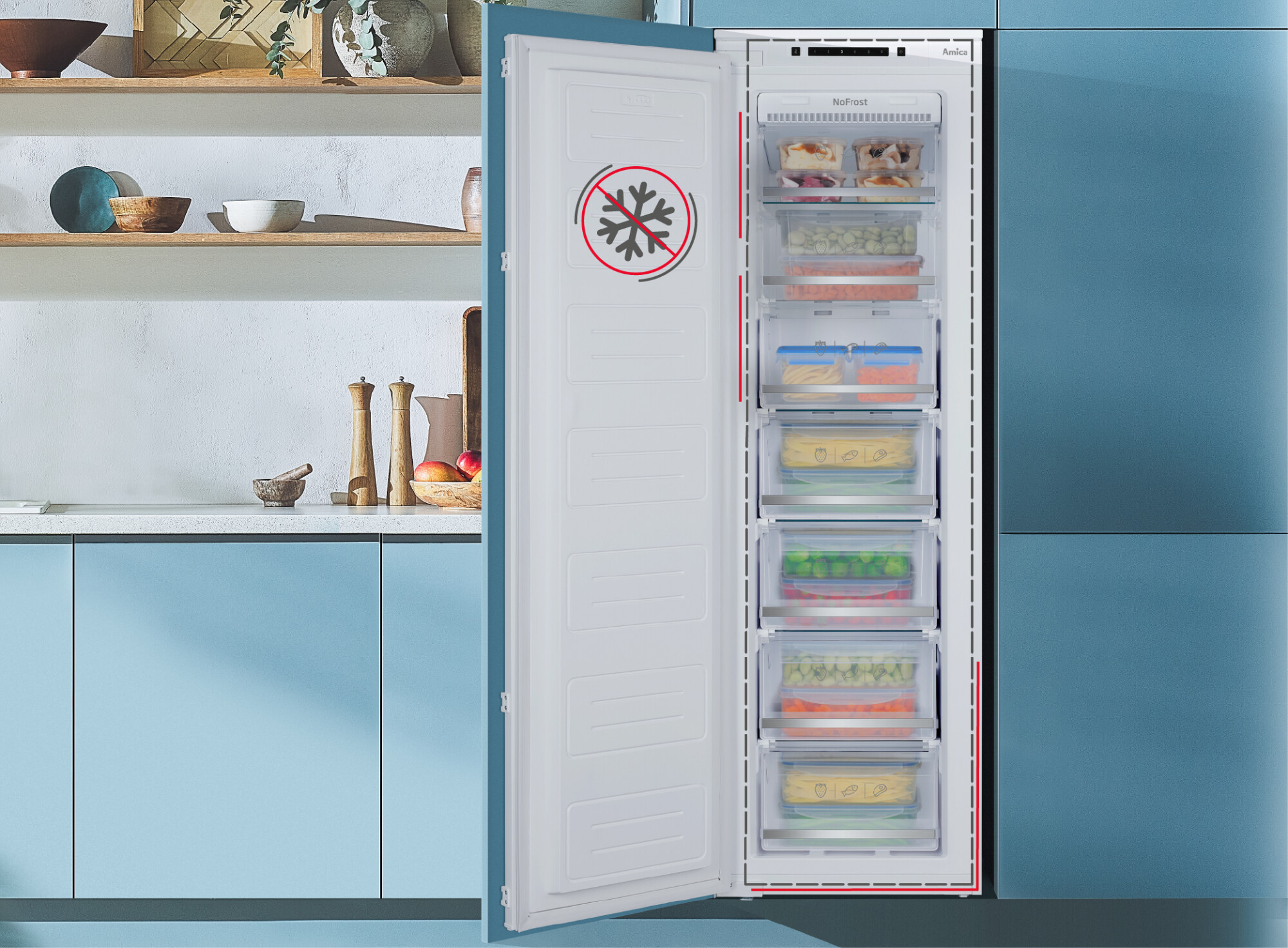 | Location of control panel outside, on the front top | No-frost system in freezer Yes | Non-flammable back wall Carton with aluminium foil | |||