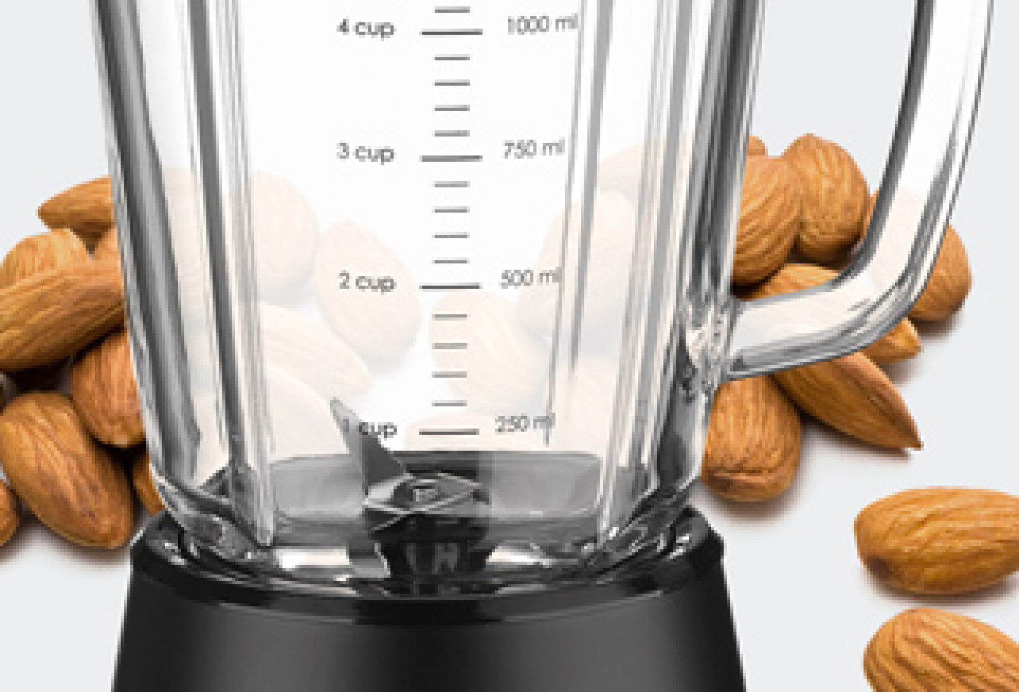 | Measure cup in jug lid Yes | Stainless-steel blades Yes | Overheat protection Yes |