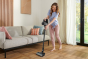 It is easy to select the right suction power for cleaning of drapes, sofas, carpets and parquet floors.