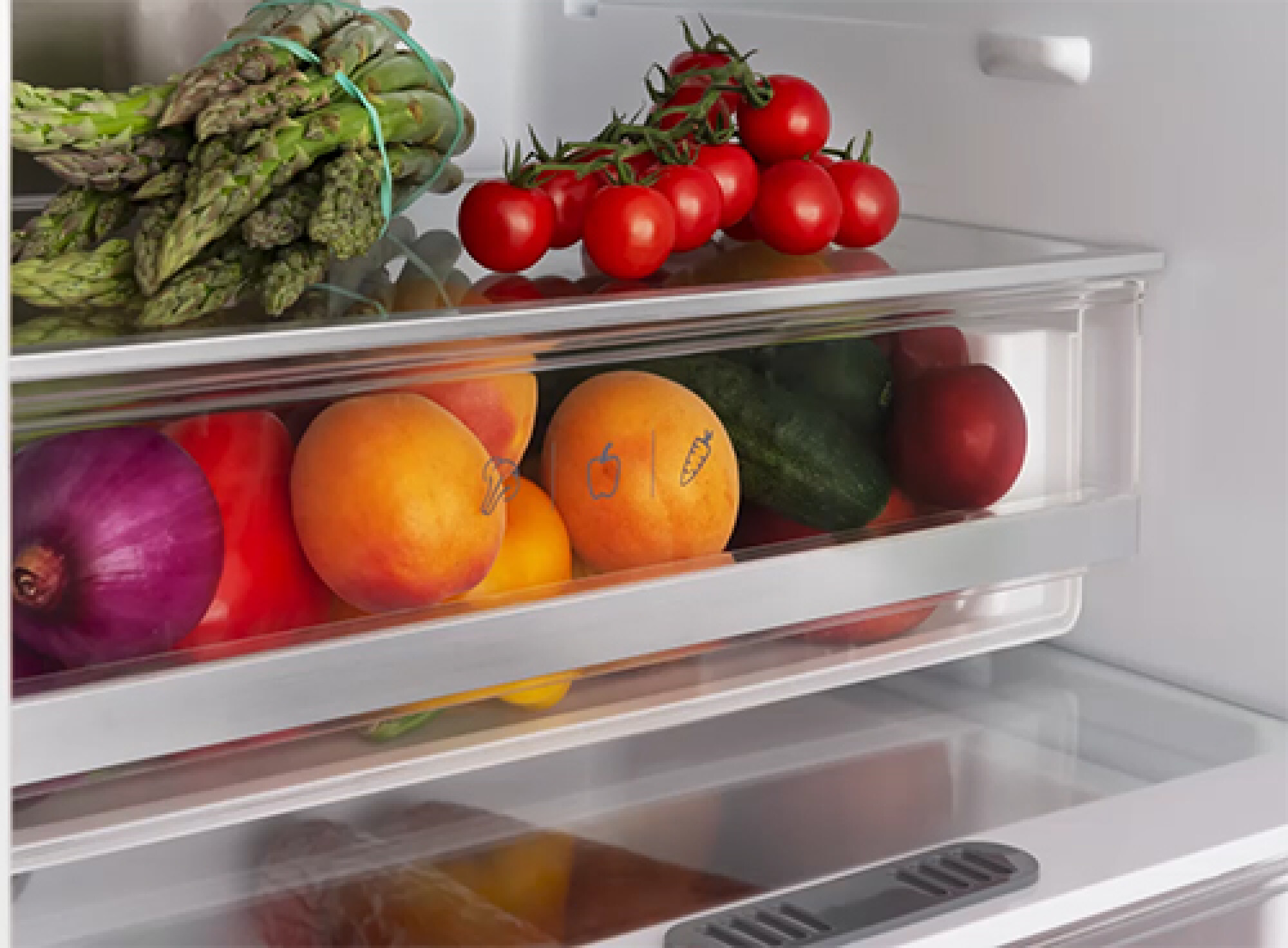| Replaceable door gaskets | Reversible doors | Safety Glass | Low noise level | Thermostat setting range | Fruit and vegetable container |